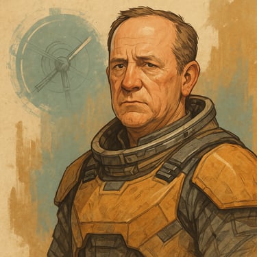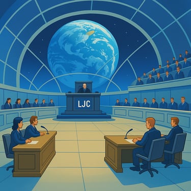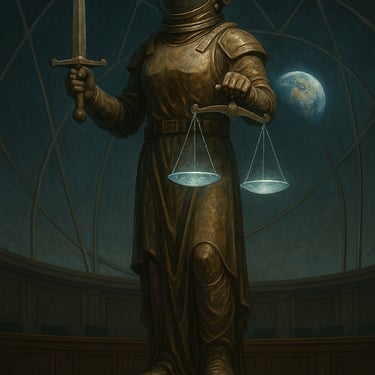 An greenhorn lawyer in a lunar courtroom with boots heavy enough to tip the scales of justice.